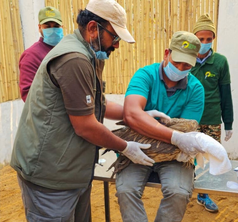 Tagging of an Indian vulture © Dr Amit Dubey / WWF-India