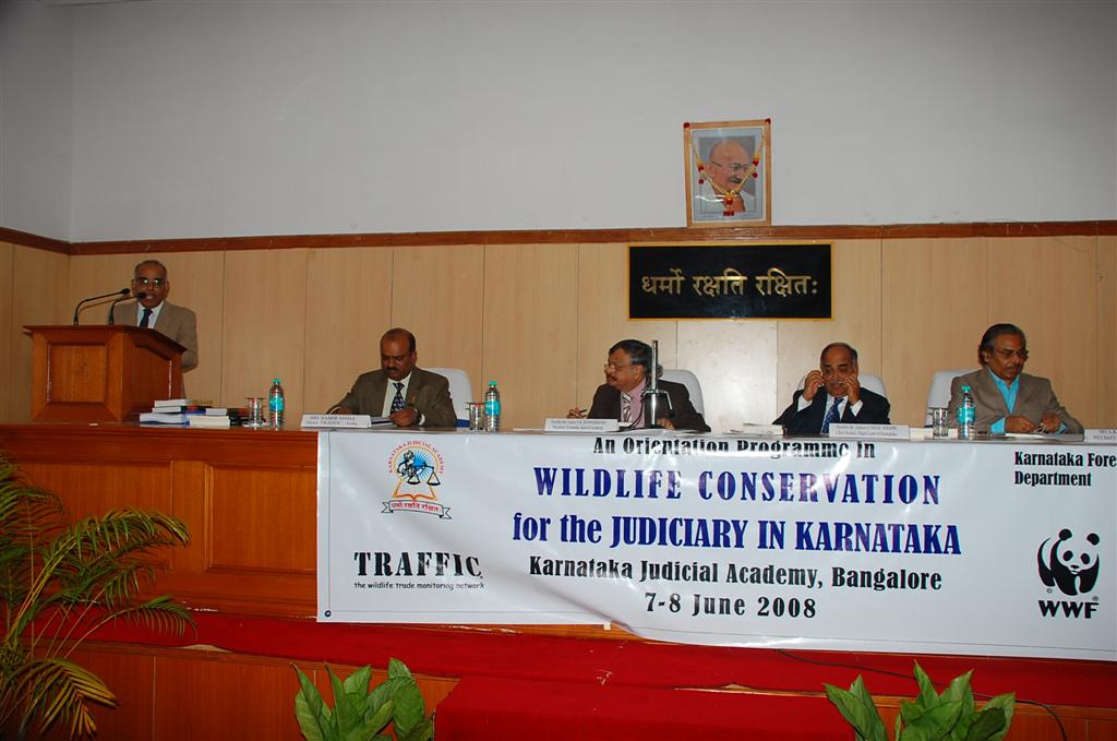 Hon. Chief Justice Cyriac Joseph in his inaugural address expressed his appreciation for TRAFFIC India and WWF, for having organized the programme on wildlife conservation. He also expressed his concern about building awareness on environment and wildlife related laws among the Judiciary members in Karnataka. Justice Joseph said “Implementation of wildlife laws will depend on the perception of the judicial officers and judges. When environment and wildlife related cases come to court, the understanding of the judges towards such issues is necessary for undertaking the right decisions. Therefore without proper orientation and training towards these laws, the Judiciary will not be able to do justice to our environment”.