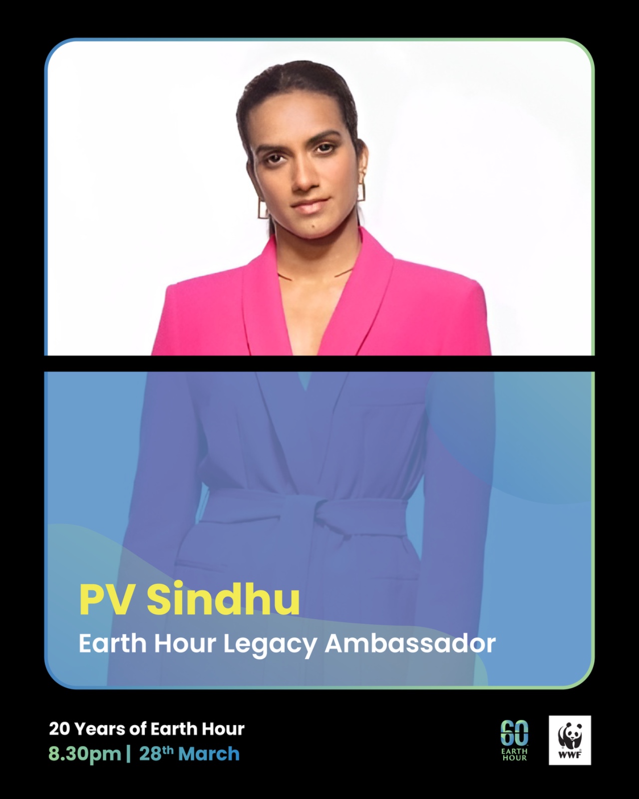 Joining the movement is Olympic medallist PV Sindhu, who returns as the Earth Hour Legacy Ambassador, highlighting the importance of sustained individual action: